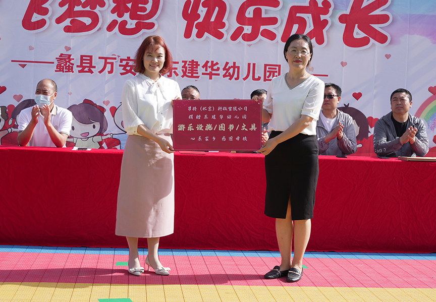 2023年6月1日,昂特科技副總經(jīng)理兼財(cái)務(wù)總監(jiān)鄧紅芳女士帶隊(duì)回到母校(萬安鎮(zhèn)東建華村幼兒園),為幼兒園捐贈(zèng)一批深受幼兒喜愛的智趣類(蕩橋、攀爬架)游樂設(shè)施、書籍和文具,向東建華村小朋友們送去節(jié)日祝福。
